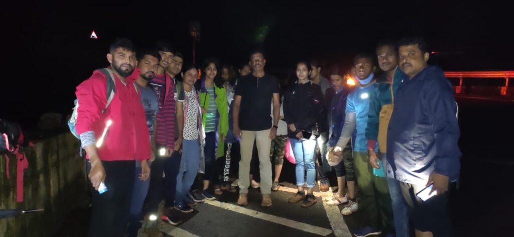 माथेरान पोलीस ठाण्याचे सहाय्यक पोलीस निरीक्षक प्रशांत काळे यांच्या मार्गदर्शनाखाली सह्याद्री रेस्क्यू टीमचे वैभव नाईक, चेतन कळंबे, सुनिल ढोले, महेश काळे, दिनेश सुतार हे दरड कोसळलेला रेल्वे मार्ग शोधत निघाले. चिखलातुन तसेच मोठमोठ्या दगडांवरून मार्ग काढत या रस्ता चुकलेल्या तरुणांपर्यंत पोहोचले. हे सर्व तरुण अनपेक्षित घडलेल्या प्रकारामुळे भयभीत झाले होते. माथेरान पोलिसांनी रेस्क्यू टिमच्या मदतीने अखेर अडकलेल्या 12 जणांच्या ग्रुपला जवळपास रात्री 10 वाजताच्या सुमारास माथेरान घाट रस्त्यात सुखरूप आणले.