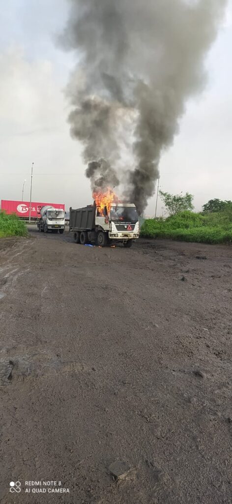 शनिवारी गव्हाण फाटा येथील रस्त्यावरुन मार्गक्रमण करणार्या डंपरला अचानक आग लागण्याची घटना घडली. यामध्ये कोणतीही जिवितहानी झाली नाही. मात्र काही काळ या मार्गावरील वाहतूक खोळंबली होती.