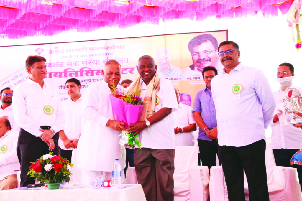 अलिबागमधील कमळ नागरी पतसंस्थेमार्फत श्रीबागमध्ये अद्ययावत असे डायलिसिस सेंटर सुरु करण्यात आले. यावेळी जयंत पाटील बोलत होते. त्यांच्या समवेत बांधकाम मंत्री रविंद्र चव्हाण, रघुजीराजे आंग्रे, विवेक भागवत, अविनाश कोळी, कमळचे अध्यक्ष सतीश पाटील, डॉ. अपूर्वा पाटील, डॉ. सौरभ पाटील, डॉ. हार्दिक शहा आदी मान्यवरांसह कमळचे अधिकारी, कर्मचारी व नागरिक बहूसंख्येने उपस्थितीत होते.