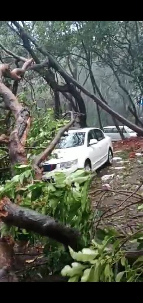 मुंबई येथील पर्यटक माथेरान येथे पर्यटनासाठी आले होते,त्यांनी आपल्या सोबत आणलेली स्कोडा कंपनीची महागडी कार वाहनतळ येथे पार्क करून ते पर्यटक माथेरान शहरात पर्यटनासाठी गेले होते.१४ जुलै च्या रात्री त्या गादीवर मोठे झाड कोसळले होते. मात्र गाडीच्या मालकाला हि माहिती आज सकाळी मिळाल्याने ते त्या ठिकाणी पोहचले आणि झाडीचे झालेले नुकसान याबद्दल पाहणी केली. माथेरान येथील वाहनतळाची व्यवस्था वन अखत्यारीत असून संयुक्त वन संरक्षण समिती च्या माध्यमातून कर संकलन देखील केले जाते. त्यामुळे वादळात कोसळलेल्या झाडामुळे गाडीचे झालेलं नुकसान कोण भरून काढणार याबद्दल प्रश्न निर्माण झाले आहेत.