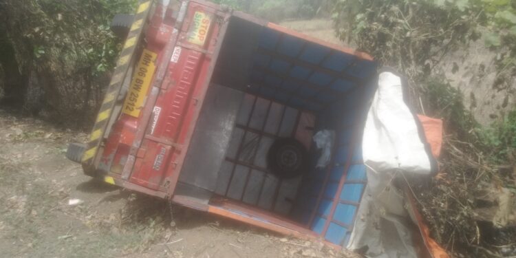 अलिबाग येथे टेम्पो उलटून अपघात; चालक बालबाल बचावला