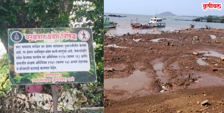 रायगड जिल्ह्यातील मुरुड तालुक्यातील ताराबंदर समुद्रकिनारी अनधिकृत भराव आणि कांदळवनाची मोठ्या प्रमाणात कत्तल सुरू असताना प्रशासनाने पूर्णपणे मौन धरले आहे. याचवेळी पारंपरिक मच्छिमारांना त्यांच्या बोटी हटवण्याचे आणि प्रवेश निषिद्ध फलक लावण्याचे आदेश देऊन वनविभागाच्या कर्मचाऱ्यांकडून धमकावणी सुरू आहे. यामुळे ग्रामस्थांमध्ये संतापाची लहर उसळली असून, भूमाफियांच्या जाळ्यात प्रशासन अडकल्याचा आरोप होत आहे.