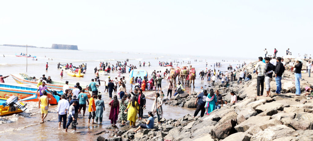 दरम्यान, पाऊस संपल्यानंतरच्या पहिल्या आठवड्यातच पर्यटकांनी मोठ्या प्रमाणात तालुक्यातील समुद्रकिनारी हजेरी लावली आहे. यावेळी पर्यटकांनी भरतीच्या वेळी पाण्यात भिजण्याचा आनंद लुटला. त्याचबरोबर पर्यटकांनी समुद्रकिनाऱ्यावरील वॉटर स्पोर्टचा देखील मनमुराद आनंद लुटला. तसेच, काहींनी उंट सवारीकरत मज्जा लुटली. यादरम्यान, येथील हॉटेल, रिसॉर्ट आणि कॉटेजेस देखील पर्यटकांनी फुल्ल झाले होते. त्यामुळे व्यावसायिक प्रचंड प्रमाणात सुखावले होते. तसेच, छोट्या-मोठ्या व्यावसायीकांचा देखील धंदा तेजीत होता. तसेच, समुद्र देखील शांत झाल्याने मासळी देखील मोठ्या प्रमाणात मिळत आहे. त्यामुळे तालुक्यातील मच्छी बाजारांत देखील मासळी खरेदीसाठी पर्यटकांसह हॉटेल व्यावसायीकांनी मोठी गर्दी केली होती. त्यामुळे मच्छी विक्रेत्यांचा देखील धंदा तेजी होता.