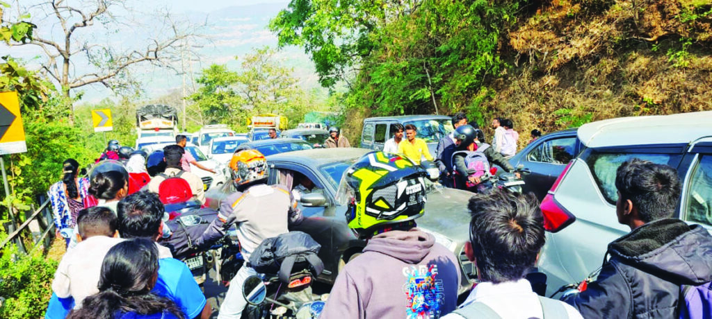 सरत्या वर्षाला निरोप देण्याबरोबरच नव्या वर्षाच्या स्वागताचा जल्लोष रायगड जिल्ह्यात साजरा करण्याचा निर्णय पर्यटकांनी यंदाही घेतला आहे. मागील महिन्याभरापासून हॉटेल, कॉटेजेस पर्यटकांनी बुकिंग सुरू केली होती. 28 डिसेंबरपासून ते चार डिसेंबरपर्यंत सर्वच हॉटेल्स बुक असल्याची माहिती उपलब्ध झाली आहे. त्यामुळे यावर्षीदेखील पर्यटकांनी रायगड जिल्ह्याला पसंती दर्शविली असल्याची माहिती समोर आली आहे. सागरी मार्गासह रस्त्यानेदेखील पर्यटक रायगड जिल्ह्यात दाखल झाले. मुंबई-गोवा महामार्गासह रायगड जिल्ह्यातील अलिबाग-वडखळ, अलिबाग-मुरूड, अलिबाग-नागाव रस्त्यावर वाहनांच्या रांगाच रांगा होत्या. अलिबाग ते बेलकडे हे दहा मिनिटाचे अंतर पार करण्यासाठी अर्धा ते एक तास लागला. त्यामुळे पर्यटकांना त्यांच्या निश्चितस्थळी वेळेवर पोहोचता आले नाही. जिल्ह्यातील वेगवेगळ्या मार्गांवर वाहतूक कोंडी झाल्याने ही कोंडी सोडविताना वाहतूक पोलिसांची दमछाक उडाली. वाहतूक पोलीस अपुऱ्या मनुष्यबळाला मदत म्हणून दोनशे होमगार्डची मदत घेण्यात आली. तरीदेखील ही वाहतूक कोंडी सोडविण्यास यंत्रणा अपयशी ठरल्याचे बोलण्यात आले आहे.