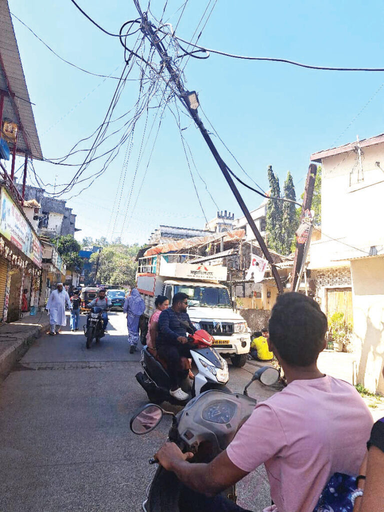माथेरान नेरळ रस्त्यावर पोतदार कुटुंबाच्या घराच्या बाजूला उभा असलेला विजेचा खांब अज्ञात वाहनाच्या धडकेत अर्धवट कोसळला. अज्ञात वाहनाच्या धडकेत विजेचा खांब अर्धवट कोसळल्यानंतर मोठा आवाज झाला आणि नेरळ बाजारपेठ भागातील विजेचा प्रवाह खंडित झाला. अज्ञात वाहन नेरळ येथून पसार झाल्याने त्याची कोणतीही माहिती नाही. मात्र, नेरळ बाजारपेठ भागातील विजेचा खांब अर्धवट कोसळल्याने नेरळमधील विजेचा प्रवाह खंडित झाला. त्याबद्दल नेरळमधील महावितरण कार्यालयाला कळविण्यात आले. मात्र, दुपारी बारा वाजता महावितरणाचे कर्मचारी नवीन विजेचा खांब घेऊन घटनस्थळी पोहचले. त्यानंतर नवीन विजेचा खांब उभा करणे आणि वीजवाहक तारा ओढणे ही कामे पूर्ण झाल्यावर महावितरण कर्मचार्यांनी विजेचा खांब कापून काढण्यात आला. त्यानंतर सायंकाळी नेरळ गावातील विजेचा पुरवठा पूर्ववत करण्यात आला.