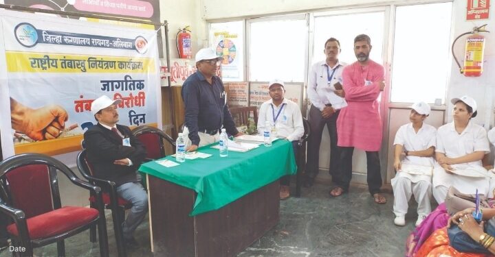 31 मे हा दिवस जगभर जागतिक तंबाखू विरोधी दिन म्हणून साजरा करण्यात येतो, याचे औचित्य साधून जिल्हा रुग्णालय अलिबाग येथे विविध जनजागृतीपर उपक्रमांनी हा दिवस साजरा करण्यात आला. सकाळी तंबाखू व तंबाखू जन्य पदार्थ विरोधी रॅलीचे आयोजन अलिबाग शहरातील बाजारपेठ, दुकान व वस्ती परिसरातून करण्यात आले. यात सहभागी नर्सिंग कॉलेजच्या विद्यार्थ्यांनी तंबाखू विरोधी घोषण देऊन अलिबागकारांचे लक्ष वेधले. सदर रॅलीला अतिरिक्त जिल्हा शल्यचिकित्सक डॉ. प्रमोद गवई यांनी झेंडा दाखविला तसेच नर्सिंग कॉलेज अलिबागमध्ये तंबाखूचे आणि तंबाखूजन्य पदार्थाचे दुष्परिणाम दर्शविणारी पोस्टर स्पर्धेचे आयोजन करण्यात आले. त्या पोस्टारची रुग्णालयात येणारे रुग्ण आणि त्यांच्या नातेवाईकांमध्ये जनजागृती व्हावी यासाठी प्रदर्शनी लावण्यात आली आहे.