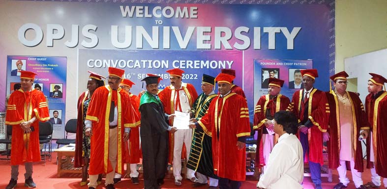 मुरुड वसंतराव नाईक महाविद्यालयात ग्रंथपाल या पदावर कार्यरत असलेले गजानन मुनेश्वर यांना ओपीजेएस विद्यापीठ चुरू राजस्थान येथे दिक्षा समारंभात डॉ.जोगेंद्र सिंह यांच्या हस्ते पीएचडी पदवी प्रदान करण्यात आली. यावेळी चौधरी ओमप्रकाश, डॉ.जोगेंद्र सिंह, डॉ.राजेश कुमार पाठक, डॉ.उपेंद्र सिंह आदिंसह मान्यवर उपस्थित होते.