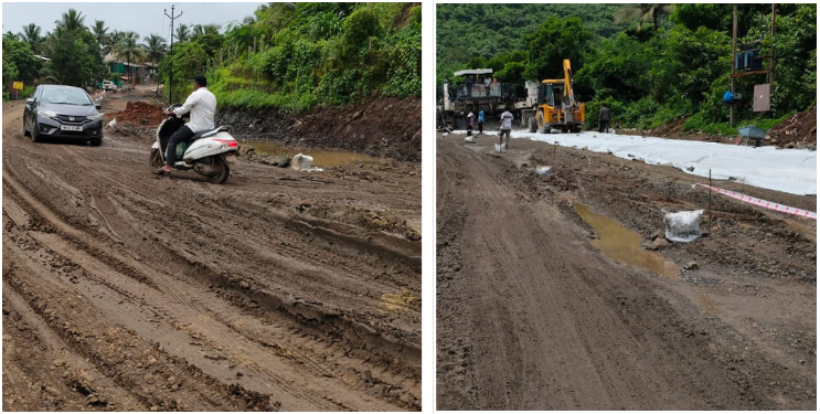 साळावपासून पुढील रस्त्याचे खोदकाम मे महिन्यात केले होते. मातीचा भरावही ठिकठिकाणी करण्यात आला. रस्त्याच्या बाजूला असलेली अनेक झाडे झुडूप काढण्यापासून ठिकठिकाणी मोऱ्या बांधण्यासाठी खोदकामही करण्यात आले. काही ठिकाणी जेसीबीच्या मदतीने भराव करण्यापासून खडी टाकून सपाटीकरण्याचा प्रयत्न केला. परंतु, कूर्म गतीने सुरू असलेल्या या कामाचा फटका रस्त्यालगत असलेल्या लहान मोठ्या व्यावसायिकांना बसला. बिर्ला मंदीर हे धार्मिकस्थळ म्हणून ओळखले जात असताना पर्यटनाच्या दृष्टीनेदेखील या ठिकाणी भाविकांची मोठी गर्दी होते. सुट्टीच्या दिवशी पर्यटक या ठिकाण आवर्जून येतात. परंतु, साळाव, बिर्ला मंदीर, शिरगांव, ताडगाव, या भागात ठिकठिकाणी केलेल्या खोदकामामुळे वाहतूकीवर त्याचा मोठा परिणाम झाला आहे.