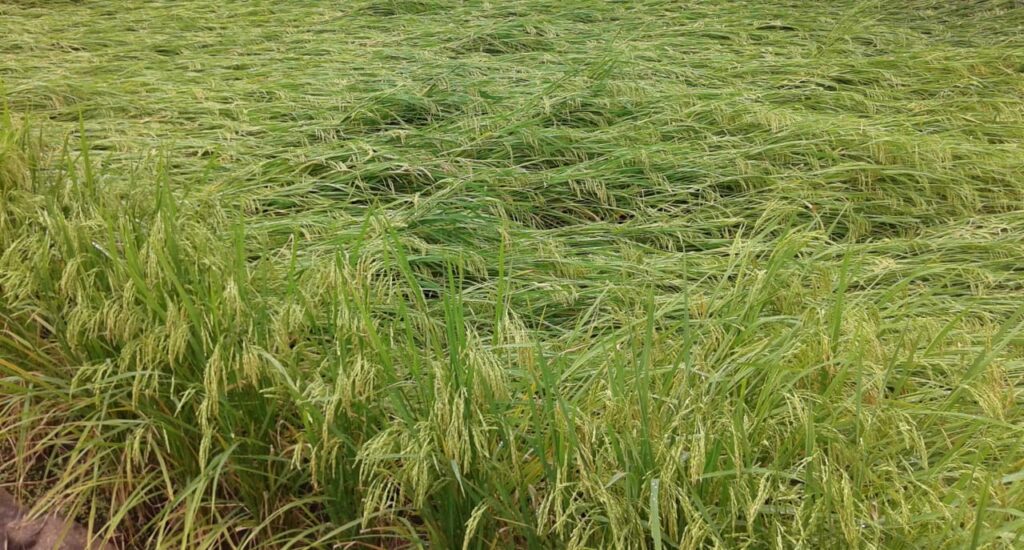 गेले अनेक दिवस परतीचा पाऊस शेतकऱ्यांच्या मुळावर उठल्यामुळे तालुक्यातील भात शेतीचे प्रचंड नुकसान होत आहे. भाताच्या लोंब्यामध्ये दाणा तयार होण्याच्या मार्गावर असल्यामुळे त्यातच सायंकाळी पावसाची जोरदार बॅटींग आणि सोसाट्याचा वारा यामुळे भात शेती पडत आहे. मात्र, परतीचा पाऊस सायंकाळी येत असल्यामुळे हीच स्थिती सातत्याने राहिली तर हातामध्ये हवे तेवढे धान्य मिळणार नाही, आशी भिती शेतकरी वर्ग व्यक्त करीत आहेत.