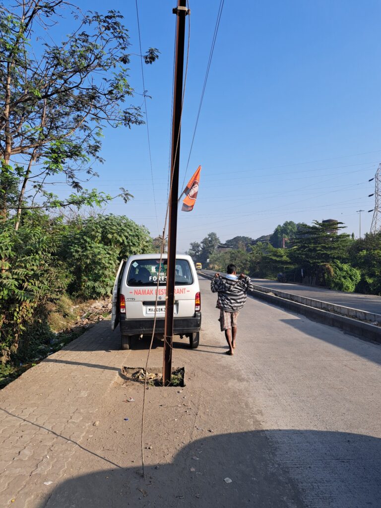 भिसेगाव रस्त्यावर आजही विजेचे खांब…. अपघाताची शक्यता