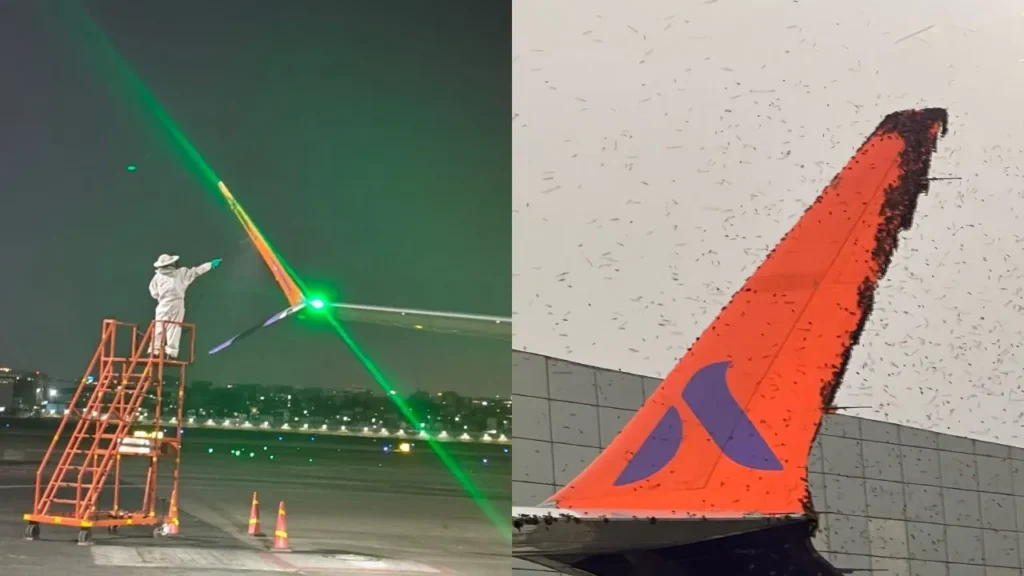 अकासा एअरचे मुंबईहून दिल्लीला जाणारे विमान बे नंबर A1 वर थांबले होते. याच दरम्यान अचानक मोठ्या संख्येने मधमाश्या जमा होऊ लागल्या. काही क्षणातच संपूर्ण विमानाला मधमाश्यांनी वेढले. यामुळे प्रवाशांमध्ये काही काळ भीतीचे वातावरण निर्माण झाले. यानंतर विमानतळावरील क्वीक रिस्पॉन्स टीमला घटनेची माहिती मिळताच त्यांनी तात्काळ घटनास्थळी धाव घेतली. या टीमने सुरक्षित आणि पर्यावरणपूरक पद्धतींचा वापर करून मधमाशांना विमानापासून हटवले. त्यांच्या या त्वरित प्रतिसादाने मोठा अनर्थ टळला.