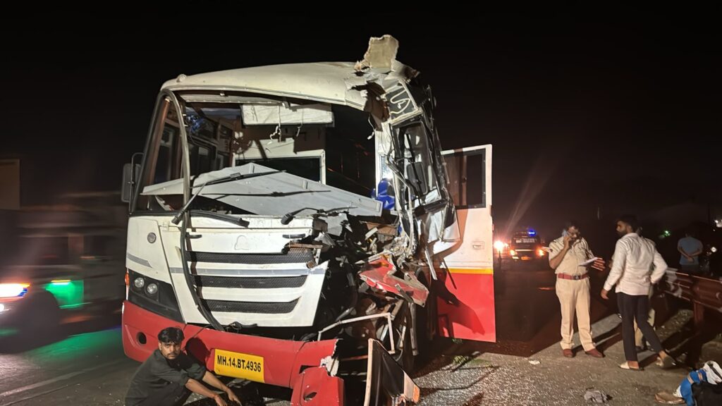 बसची कंटेनरला जोरदार धडक; ६ प्रवाशी जखमी