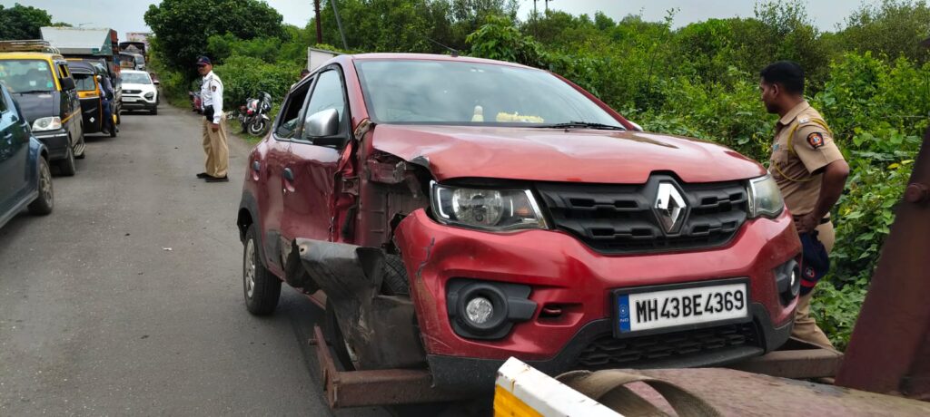 आरसीएफ कॉलनी गेटसमोर कारचा अपघात