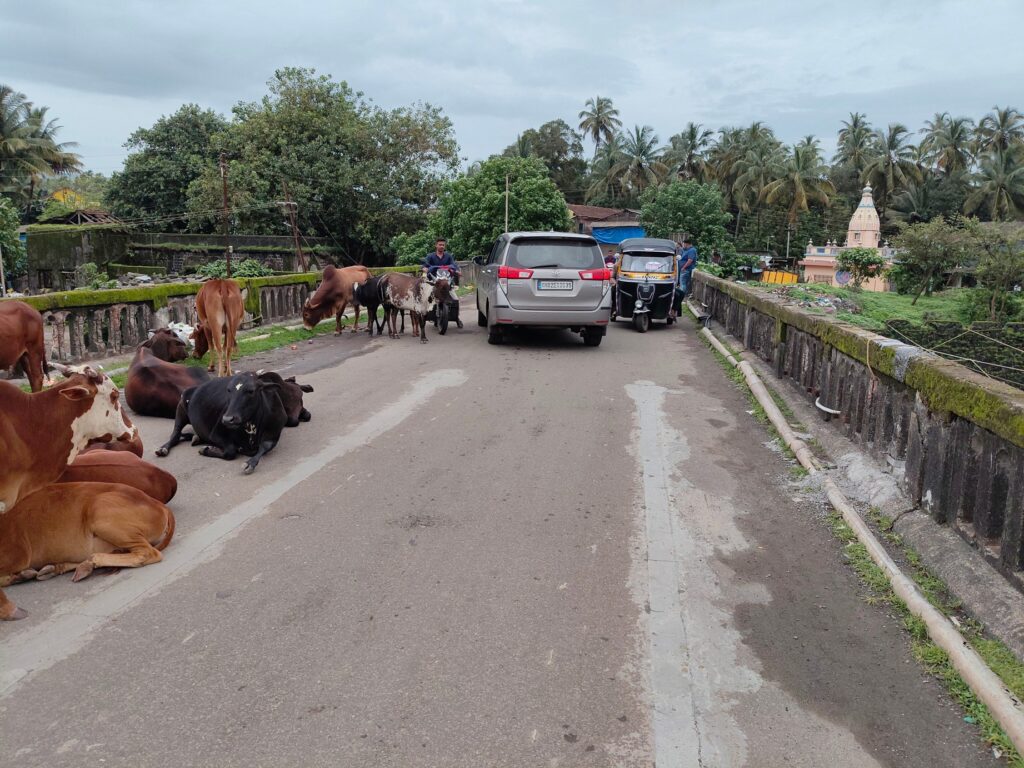 एकदरा पुलावर मोकाट गुरांचा ठिय्या