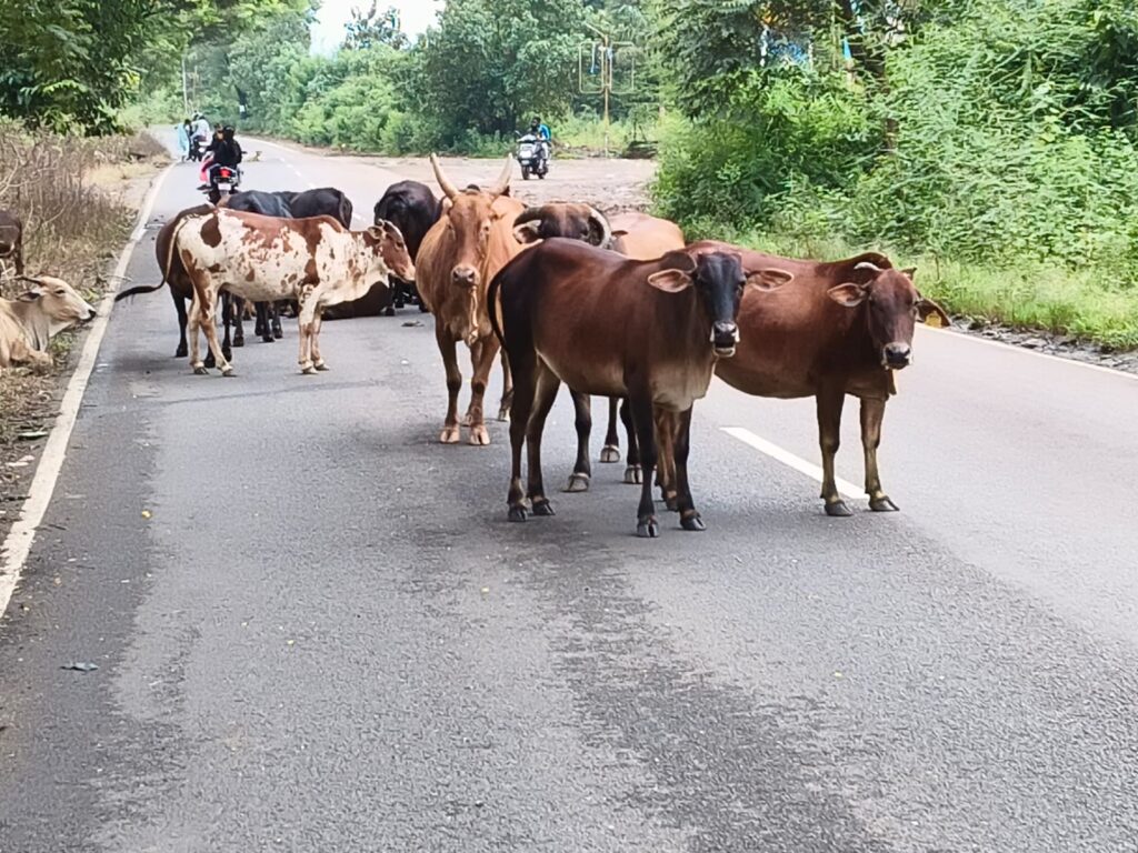 ग्रामीण भागातील रहदारीच्या रस्त्यांच्या मधोमध मोकाट गुरांचा ठिय्या सातत्याने दिसत आहे. हेटवणे, सुतारवाडी, कुडली, नारायणगाव, विळे या ठिकाणी वारंवार मोकाट सोडलेली जनावरे घोळक्याने उभे असतात. आपली जानवरे कोठे आहेत, रात्री घरी का परत आली नाहीत, याची किंचितही काळजी किंवा चिंता गुरे मालकांना नसते. त्यामुळे ही मोकाट जनावरे रात्रंदिवस रस्त्यावर विश्रांती घेत असतात. या मोकाट सोडलेल्या गुरांचा वाहन चालकांना मोठा त्रास सहन करावा लागत आहे. विशेषतः अवघड कॉइल घेऊन जाणारा ट्रेलर चालकांना खाली उतरून उभ्या असलेल्या किंवा बसलेल्या जनावरांना तेथून हाकलावे लागत आहे. ही समस्या गेल्या अनेक वर्षांपासून जाणवत आहे. रात्री अपरात्री वाहनचालक या गुरांना कधी उडवून जातो ते कळत सुद्धा नाही. त्यामुळे त्यात गुरांचा मृत्यू होऊन शेतकऱ्याचे मोठे नुकसान होत आहे. त्यामुळे संबंधित प्रशासनाने यावर लवकरात लवकर मार्ग काढावा, असे वाहनचालकांसह स्थानिकांमधून बोलले जात आहे.