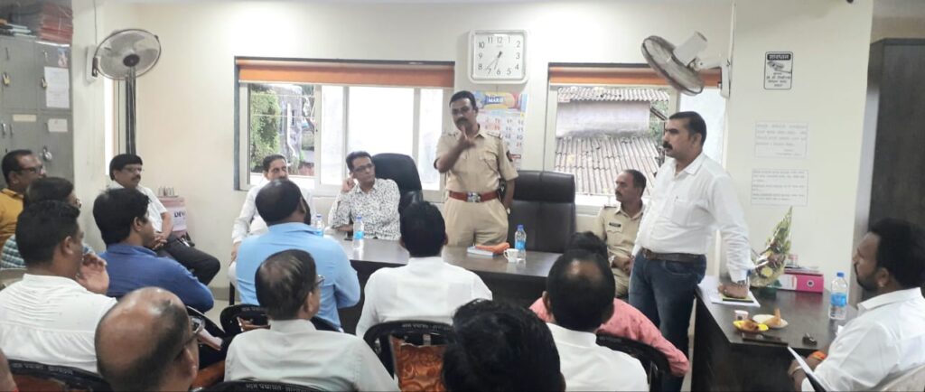 नागोठणे ग्रामपंचायत प्रशासकीय हॉलमध्ये गणेशोत्सवाच्या अनुषंगाने आयोजित नागोठणे पोलीस ठाण्याहद्दीतील सार्वजनिक गणेशोत्सव मंडळ अध्यक्ष, पदाधिकारी, शांतता समिती सदस्य, व्यापारी असोसिएशन, वाहतूक संघटना, मोहल्ला कमिटी सदस्य यांच्या शांतता समितीच्या बैठकीत उपस्थितांना मार्गदर्शन करताना ते बोलत होते. यावेळी नागोठणे सरपंच डॉ मिलिंद धात्रक, व्यापारी असोसिएशनचे प्रकाश जैन माजी सरपंच विलास चौलकर, सुरेश गायकर, किशोर म्हात्रे, ज्ञानेश्वर सांळुके, अशफाक पानसरे, एकनाथ ठाकूर, अनिल गिते, विवेक सुभेकर, यशवंत चित्रे, अमित मोदी, दिपेंद्र आवाद, दिनेश घाग, ग्रामविकास अधिकारी मोहन दिवकर यांच्यासह पोलीस उपनिरीक्षक सचिन निकम, विनोद पाटील, सत्यवान पिंगळे व नागोठणे पोलीस ठाण्याच्या हद्दीतील नागरिक उपस्थित होते.