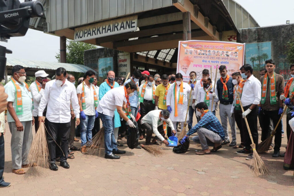 कोपरखैरणे रेल्वे स्थानकात स्वच्छता मोहीम
