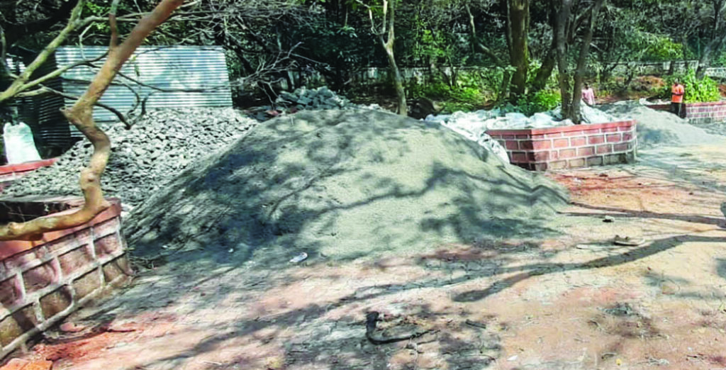 वाहनतळाच्या जागेत बांधकामाचे साहित्य