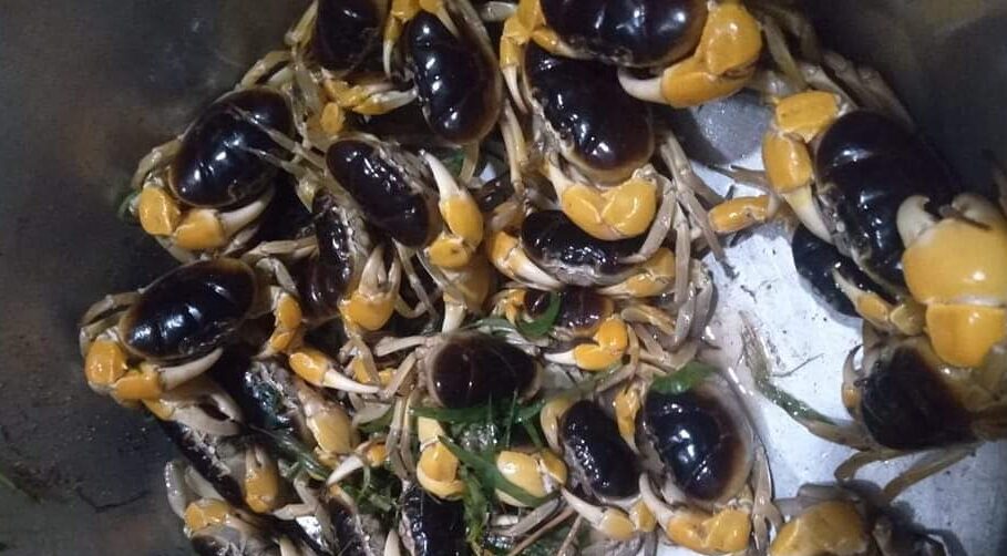 इतर खेकड्यांपेक्षा आकाराने लहान असलेल्या मुठ्यांचा रंग तजेलदार काळा व पिवळा असतो. पाठीचा भाग थोडा गोलाकार वर आलेला असतो. आकाराने लहान असले तरी त्याचे मांस चविष्ठ व आरोग्यवर्धक असते. मुठे वेगवेगळ्या प्रकारे आणि पद्धतीने बनवून खाल्ले जातात. त्यातील सर्वात प्रसिद्ध पद्धत म्हणजे मुठ्यांचे कवच काढून त्यामध्ये तांदूळ किंवा चण्याच्या पिठाचे मिश्रण भरले जाते. हे मिश्रण भरल्यावर धाग्याने पुन्हा कवच बांधून कालवण तयार केला जातो. हे भरलेलं मिश्रण चविष्ठ आणि लज्जतदार लागते. वाढते प्रदूषण, शहरीकरण व बांधकामे यामुळे मुठ्यांची निवासस्थाने नष्ट होत आहेत. तसेच पावसाचा अनियमितपणा या कारणामुळे प्रजोत्पादन कमी होऊन मुठ्यांची संख्या घटत आहे, अशी भीती खेकडे अभ्यासक नचिकेत घरत व्यक्त करतात.
