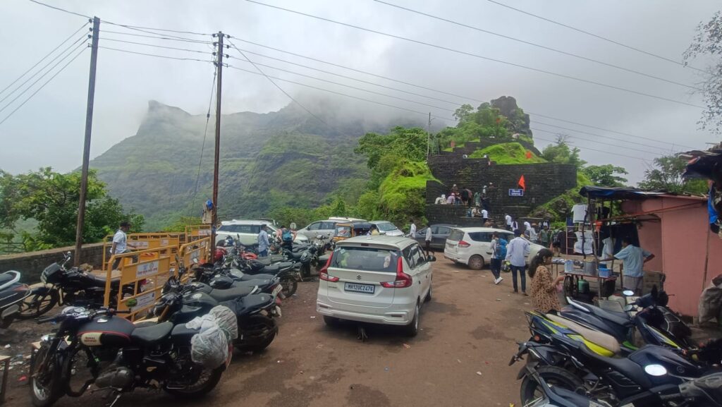महाराष्ट्राची अस्मिता असलेला रायगड किल्ला, राजमाता जिजाऊंचे समाधीस्थळ असलेले पाचाड परिसराचा सध्या मोठ्या प्रमाणात विकास होत असल्याचे दिसून येत आहे. यामुळे शिवप्रेमी आणि पर्यटक मोठ्या संख्येने गडावर येतात. यापूर्वी पावसाळ्यात रायगडावर पर्यटक आणि शिवप्रेमी येणे बंद असायचे, मात्र आता गडावर पर्यटक पावसाळ्यातदेखील दाखल होऊ लागले आहेत. रायगड पाहण्यास पर्यटकांनी एकच गर्दी केल्यामुळे पाचाडपासून वाहनांच्या रांगा लागल्या असून, चित्तदरवाजा येथे वाहने पार्किंग करण्याचा मोठा प्रश्न निर्माण झाला आहे. रायगड रोपवे ला सुमारे चार तासांची प्रतीक्षा असल्याने पायी जाणाऱ्यांची संख्यादेखील वाढली आहे. यामुळे चित्त दरवाजा येथे पर्यटकांची मोठी गर्दी दिसून येत आहे.