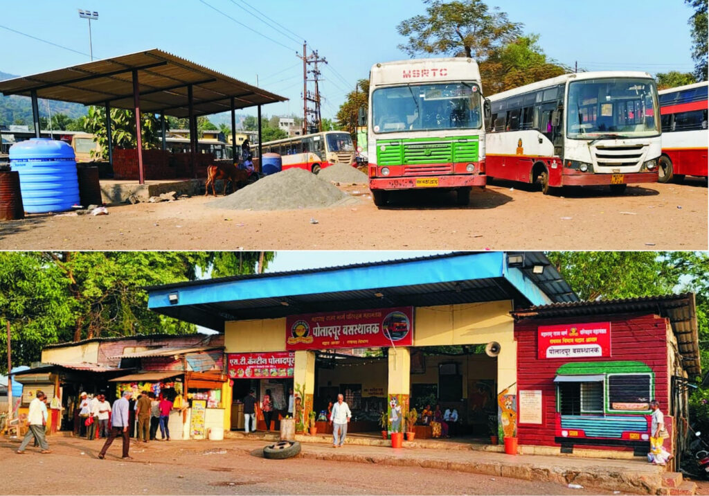 रायगड जिल्ह्याचे शेवटचे टोक असलेल्या पोलादपूर स्थानकात भर दुपारी बस गाड्या लावायला जागा नसल्याने अनेक गाड्या प्रवेशद्वाराजवळ उभ्या राहतात तर अनेकदा त्या स्थानकात न शिरता बाहेरच्या बाहेर मार्गस्थ होत आहेत. या बसस्थानकाचे नव्याने काम करण्यात येणार असल्याने प्रवेशद्वाराच्या बाजूला नव्या शेडचे काम करण्यात आले आहे. परिणामी, स्थानक परिसरात धूळ उडत आहे. त्यातच नव्याने बांधण्यात आलेल्या स्वच्छतागृहाची तावदाने अद्याप काचेविनाच आहेत. त्यामुळे महिला व पुरूष प्रवाशांची कुचंबणा होत आहे. दरम्यान, स्थानिक लोकांच्या जमिनीवर या एसटी बसस्थानकाचे अतिक्रमण झाले असल्याचे वेळोवेळी जमिन मालकांच्या वारसांकडून आमसभा तसेच महसूल प्रशासनाकडे दाद मागून लक्ष वेधण्यात आले होते. नव्याने एस.टी.बसस्थानकाचे बांधकाम करण्यासाठी निविदा काढून काम सुरू केल्याने न्यायालयामध्ये संबधित मालक दाद मागण्याच्या पवित्र्यात आहेत.