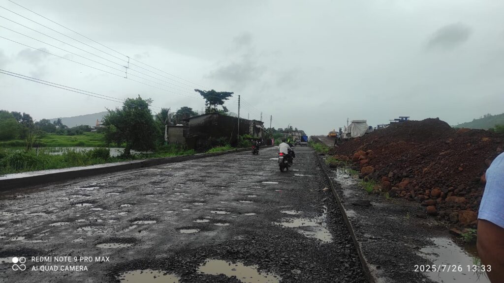 तब्बल 30 दिवसांवर कोकणातील गणेशोत्सव येऊन ठेपला असताना देखील रायगड जिल्ह्यातून जाणाऱ्या मुंबई- गोवा राष्ट्रीय महामार्गावर पडलेल्या खड्ड्यांचे विघ्न संपण्याचे नाव घेत नाही. खड्ड्यात रस्ता की रस्त्यात खड्डा अशी अवस्था या महामार्गाची झाली असून, रायगड जिल्ह्यात निवडून येणारे सर्वच आमदार व खासदार सत्ताधारी राज्य व केंद्र सरकारमधील प्रतिनिधित्व करीत असताना यंदा देखील चाकरमान्यांना वाहतूक कोंडी व खड्ड्यातूनच रायगड जिल्ह्यातील टप्पा पार पाडावा लागणार आहे. सत्तेत असणारे लोकप्रतिनिधी मूग गिळून गप्प बसलेत असा आरोप कोकणकर जनता करीत आहे. मुंबई- गोवा महामार्गाची 15 ऑगस्टपर्यंत तातडीने दुरुस्ती न केल्यास चक्काजाम करण्याचा इशारा महाराष्ट्र वाहतूक सेनेचे रायगड जिल्हा अध्यक्ष सुभाष मोरे यांनी दिला आहे.