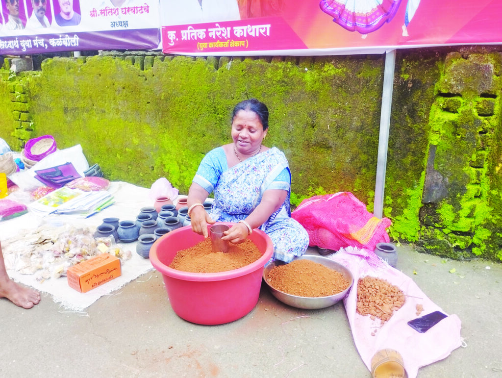 नवरात्री उत्सवादरम्यान घरोघरी घटस्थापना करण्यात येते. घट बसवण्यासाठी मातीची गरज लागते.ही गरज लक्षात घेऊन पनवेलच्या बाजारात सध्या मातीची विक्री केली जात आहे. 10 रुपयात ग्लास भर माती विकली जात असून मातेचे भक्तदेखील माती खरेदी करून नेण्याला पसंती देत आहेत. गुरूवारी (दि.3) पासून नवरात्रीला सुरूवात होणार आहे.या दिवसात मातेचा जागर करण्यासाठी लागणार्या पूजेच्या साहित्यानी बाजार सजले आहेत.