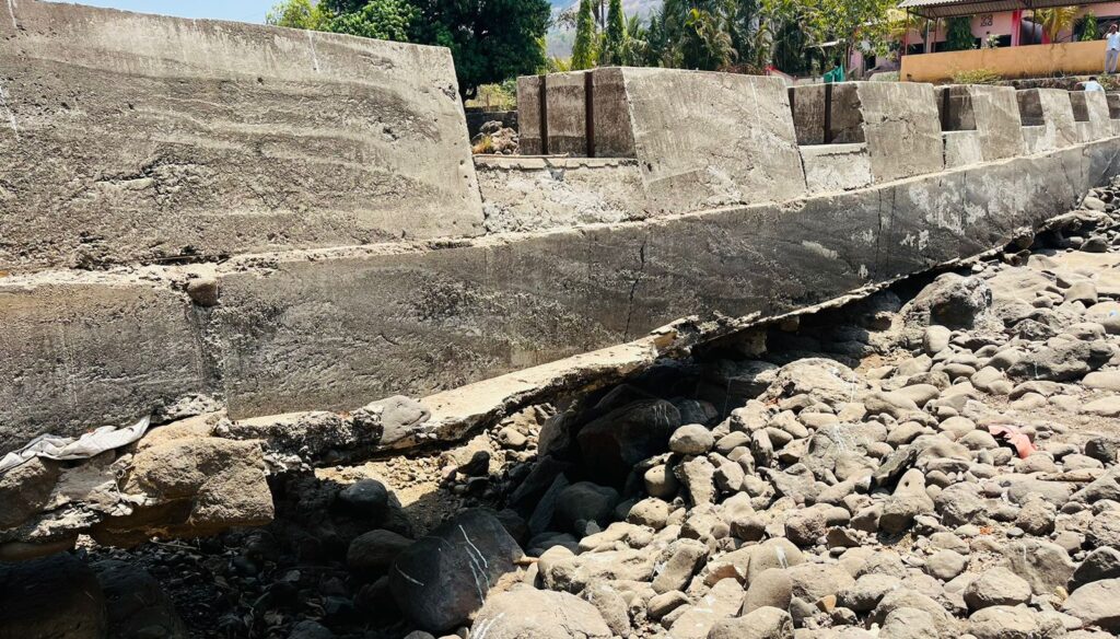 सुधागड तालुक्यातील खडसांबळे येथील नदीवरील अवघ्या एक वर्षापूर्वी बांधण्यात आलेला बंधार्याची पूर्णतः दुरवस्था झाली आहे. पाण्याची साठवण व्हावी, उन्हाळ्यात पाणीटंचाई उद्भवू नये यासाठी बांधण्यात आलेल्या बंधार्याचे बांधकाम एका वर्षात कोसळून बंधार्याच्या खालील बांधकाम एकाच पावसाळ्यात वाहून जाऊन बंधारा पूर्णतः तुटला आहे. त्यामुळे यावर्षी पाण्याची साठवण झाली नाही. परिणामी, पाणीटंचाईला नागरिकांना सामोरे जावे लागले. तसेच शासनाचा लाखो रुपयांचा निधीदेखील वाया गेला आहे.