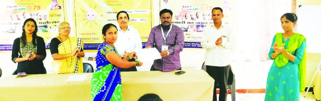कौशल्य विकास उद्योजगता मंत्रालय भारत सरकारच्या यांच्या माध्यमातून रायगड जिल्ह्यामध्ये कार्यरत असणारी जन शिक्षण संस्थान रायगड सहाण अलिबाग या ठिकाणी मंगळवारी (दि.16) इलेक्ट्रिकल टेकनिशियन, ब्युटी कल्चर हेल्थ केअर व सेल्फ एम्प्लॉईड टेलर व्यवसाय प्रशिक्षण कोर्सच्या यशस्वी प्रशिक्षणार्थींना प्रमाणपत्र वाटपाचा कार्यक्रम संपन्न झाला. सदर कार्यक्रमाच्या प्रसंगी जन शिक्षण संस्थान रायगडचे अध्यक्ष डॉ.नितीन गांधी, अॅड. नीला तुळपुळे बोर्ड मेंबर, विजय कोकणे संचालक व ग्रामपंचायत सहाणचे उपसरपंच नरेश वर्तक या मान्यवरांच्या उपस्थितीत व ब्युटी कल्चर हेल्थ केअर कोर्स प्रशिक्षिका-पूजा गायकवाड, जन शिक्षण संस्थान रायगडचे कर्मचारी प्रतिक्षा चव्हाण अकाउंट मॅनेजर, सुकन्या नांदगावकर सहाय्यक कार्यक्रम अधिकारी व इलेक्ट्रिकल टेकनिशियन, ब्युटी कल्चर हेल्थ केअर व सेल्फ एम्प्लॉईड टेलरचे प्रशिक्षणार्थीं यांच्या उपस्थितीत प्रमाणपत्र वाटप पार पडला. यावेळी उपस्थितांना मान्यवरांनी मोलाचे मार्गदर्शन केले. कार्यक्रमाचे सुत्रसंचालन प्रतीक्षा सचिन चव्हाण यांनी केले.
