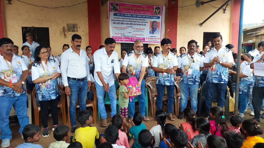 एक हात मदतीचा, चला आपणसुद्धा मदत करू या… याप्रमाणे रत्नागिरी जिल्हा मराठा सेवा संघ गेले अनेक वर्षे सामाजिक उपक्रम राबवित आहेत. संस्थेचे अध्यक्ष कमलाकर कदम यांच्या मार्गदर्शनाखाली रविवारी खालापूर तालुक्यातील शिरवली ग्रामपंचायतीच्या रानसई आदिवासी वाडीतील अंगणवाडी मुलांसह सर्व शाळकरी विद्यार्थ्यांना दप्तरे, कंपास, वह्या, पाटी, पेन्सिल तसेच महिलांना साड्या व प्रत्येक घरात चादर, ब्लँकेट अशा वस्तुंचे वाटप करण्यात आले.