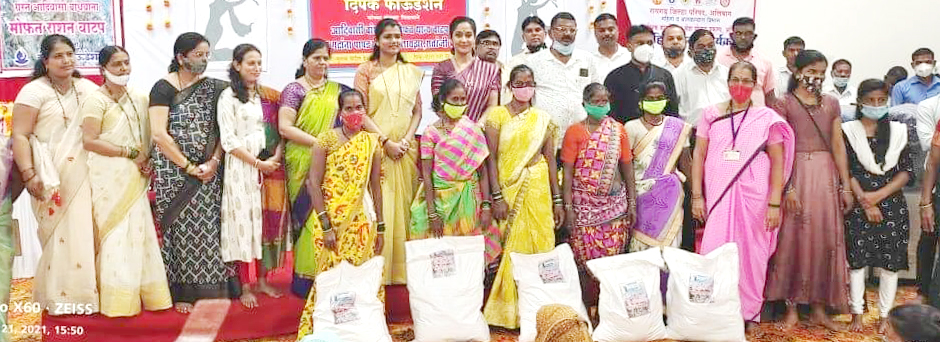 रायगड जिल्हा परिषद महिला व बालकल्याण विभाग, झेप फाऊंडेशन आणि दीपक फाऊंडेशन यांच्या संयुक्त विद्यमाने महिला बचत गटांचे सक्षमीकरण आणि रोजगार निर्मितीसाठी बचत गटांसाठी पापड यंत्र, सतरंजी आणि दळण मशीन या साहित्यांचे वाटप आणि तौक्ते चक्रीवादग्रस्त आदिवासी बांधवांसाठी जीवनावश्यक वस्तू आणि रेशन वाटप करण्याचा कार्यक्रम सुलभा पाटील हॉल आंबेपूर येथे आयोजित करण्यात आला होता.