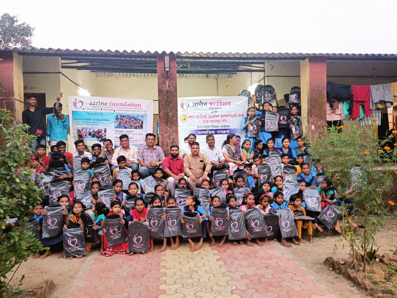 आरिन फाऊंडेशन नवी मुंबई अणि अपंग संजीवनी नवजीवन कल्याणकारी संस्था दिवा महाराष्ट्र यांच्या संयुक्त विद्यमाने जागतिक अपंग दिनाचे औचित्य साधून भिवंडी येथील शासकीय माध्यमिक व उच्च माध्यमिक आश्रमशाळा चिंबीपाडा भिवंडी या आदिवासी विभागाच्या आश्रमशाळेतील मुला-मुलींना 150 मोठ्या स्कूल बॅग व मुलींसाठी सॅनिटरी नॅपकिनचे वाटप करण्यात आले.