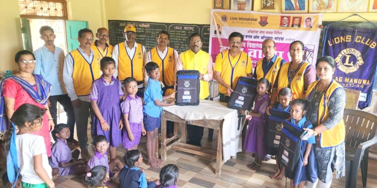 लायन्स क्लब मांडवाच्यावतीने ऑक्टोबर सेवा सप्ताहाचे विविध उपक्रम सुरु झाले आहेत. त्याचा एक भाग म्हणून शालेय विद्यार्थ्यांना डेस्किट स्कूल बॅगचे वाटप करण्यात आले. या डेस्किटचे प्रायोजक अमित नाईक, विद्या अधिकारी, सुधीर पुरो, अमरेश शिरगावकर, हर्षद पाटील, उज्ज्वला पाटील, डॉ. शुभदा कुडतलकर, धवल राऊत हे होते. या उपक्रमासाठी लायन्स हेल्थ फाऊंडेशनचे उपाध्यक्ष नितीन अधिकारी, लायन्स क्लब मांडवाचे अध्यक्ष जितेंद्र ठाकूर, प्रदीप पाटील, अमिश शिरगावकर, अभिजित गुरव, चंद्रकांत मल्हार, हर्षद पाटील, मोहन पाटील, अजय आंगणे, आमरेश शिरगावकर, विद्या अधिकारी, जितेश्री ठाकूर, सारिका पाटील, स्मितल शिरगावकर, सुमित पाटील आदी लायन्स सदस्य, पदाधिकारी उपस्थित होते.