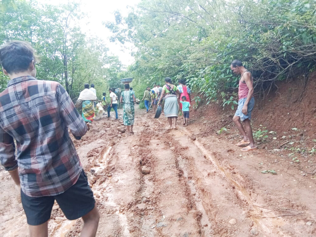 कर्जत तालुक्यातील वन जमिनीवर वसलेल्या बेकरेवाडी येथील रस्ता पावसाच्या पाण्यात वाहून गेला आहे. त्यामुळे माथेरानच्या डोंगरात असलेल्या वाड्यांमधील आदिवासी लोकांनी श्रमदान करून रस्ते बनवले आहेत. मात्र रस्त्यांची अवस्था पावसाच्या पाण्यामुळे दयनीय झाली आहे. दरम्यान,पावसाचा जोर कमी झाला असता स्थानिक आदिवासी लोकांनी पुन्हा एकदा श्रमदान करण्यास आहे.