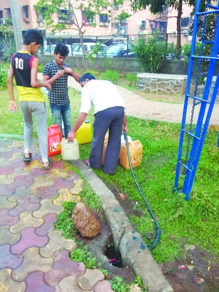 पनवेल महानगरपालिका हद्दीतील नविन पनवेल मधील काही सिडको उद्यानातून दिवसाढवळ्या पाणी चोरी केली जात असल्याचे निदर्शनास येत आहे. जे समाजसेवक सिडकोवर हंडा मोर्चा घेऊन गेले होते, यांच्या डोळ्या देखत पाणीचोरी होत आहे. मात्र याकडे जाणीवपूर्वक दुर्लक्ष केले जात असल्याचे बोलले जात आहे. या पाणी चोरांवर कारवाई करण्याची मागणी केली जात आहे. नवीन पनवेल रेल्वे स्टेशन जवळील सेक्टर 17 मधील सिडको उद्यानातून पिण्याचे पाणी चोरी केले जात आहे. पाणीपुरी, ज्युस, वडापाव, डोसा, इटली सांबर, चायनीज विक्रेते असे अनेक फेरीवाले हे त्यांना लागणारे पिण्याचे पाणी येथिल उद्यानातून सकाळ, संध्याकाळ चोरून वापरत असल्याचे निदर्शनास आले आहे. मात्र याकडे सिडको आणि महापालिका प्रशासन धृतराष्ट्रची भूमिकेतून पाहत आहे. या पाणी चोरांना अटकाव करून त्यांच्याकडून होत असणारा पाण्याचा अपव्यय थांबवावा अशी मागणी नागरिकांकडून करण्यात येत आहे. एकीकडे सिडको पाणीपुरवठा विभागाच्या भिंतीवर पाण्याचे महत्त्व तसेच पाणी बचती बाबत नियम लावले जातात. नागरिकांनी नियम पाळले नाहीतर कारवाई केली जाईल असे बनर लावून जाहीरातीपण करतात. मात्र दुसरीकडे पिण्याचे पाण्याची चोरी केली जात असताना सिडको अधिकार्यांनाकडून कानाडोळा केला जातो.
