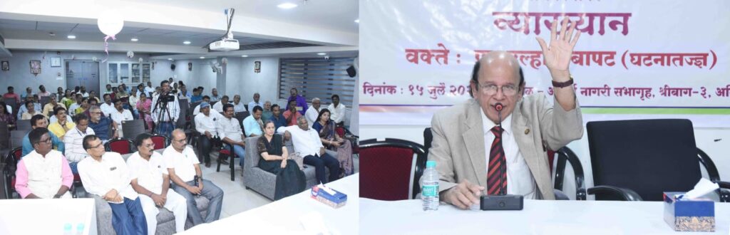 घटनातज्ञ प्रा. उल्हास बापट याचे भारतीय राज्यघटना आणि संसदीय लोकशाही या विषयावर अलिबाग प्रेस असोसिएशनच्या माध्यमातून आदर्श भवनात व्याख्यान आयोजित केले होते. प्रा. उल्हास बापट यांनी यावेळी राज्यात बदललेल्या राजकीय परिस्थिती, राज्यघटना आणि बदललेली संसदीय लोकशाहीबाबत आपले मत उपस्थितांसमोर मांडले. या व्याख्यानाला अलिबागमधील मान्यवर नागरिक मोठ्या संख्येने उपस्थित होते. नागरिकांनी विसरलेल्या प्रश्नांना घटनातज्ञ प्रा. उल्हास बापट यांनी समर्पक उत्तरे दिली.