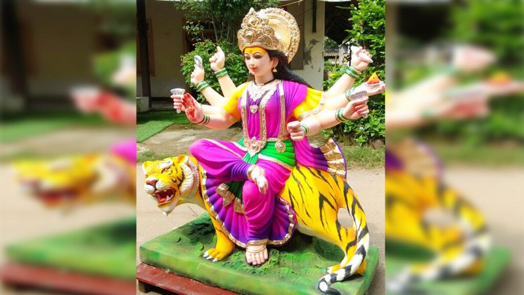शारदीय नवरात्रौत्सवाला आता पाच सहा दिवस उरले असताना मुरुड तालुक्यातील यशवंतनगर नांदगावपंचक्रोशीतील मूर्तिकारांची देवीच्या मूर्ती तयार करण्याची लगबग सुरू असून नांदगाव मधील जितेंद्र विनायक चोरघे यांनी आकर्षक व्याघ्रारुढ मूर्ती तयार केली आहे.