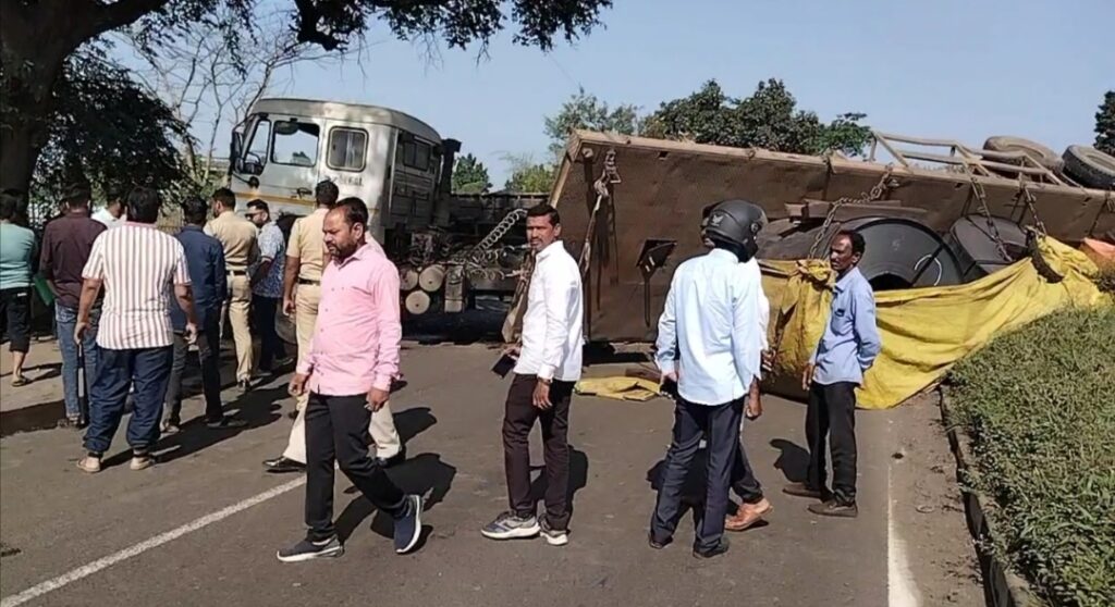 मिळालेल्या महितीनुसार, वावंढळ हद्दीत कंटेनर, टेम्पो आणि स्कुटी यांचा भीषण अपघात झाल्याची घटना सोमवारी सकाळी घडली. पनवेल दिशेकडून ट्रेलर तीन लोखंडी क्वाईल घेऊन खोपोली दिशेकडे जात असताना मोकाट जनावरांना वाचवताना चालकाचे वाहनावरील नियंत्रण सुटले आणि तोल जाऊन तो खोपोली- पनवेल मार्गावर येऊन खोपोली दिशेकडून पनवेल कडे गुड्डे बिस्कीटे घेऊन जाणाऱ्या टेम्पोला मागच्या बाजूला जोरदार धडक दिल्याने टेम्पो आणि ट्रेलर दोन्ही पलटी झाले. त्याच ठिकाणी राशिद राजपूत खोपोली म्हाडा कॉलनी येथे राहणारा स्कुटी चालक त्याची स्कुटी उभी करून भ्रमणध्वनी वर बोलत असताना त्याला जोरदार धडक दिल्याने तो रक्ताच्या थारोळ्यात पडला.