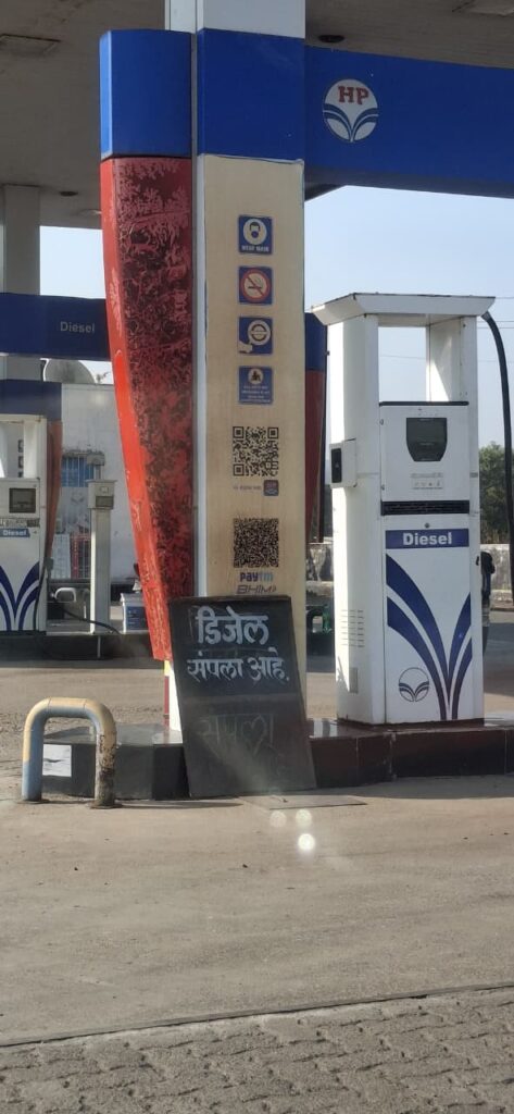 शहरामधील व भोवतालचे बहुसंख्य पेट्रोल पंप बंद होते. एका ठिकाणी पेट्रोल पंप सुरू होता. तिथे प्रचंड प्रमाणात गर्दी होती. रांगेत उभे राहून गर्दीचा सामना करत पेट्रोल भरून घेतले. पेट्रोलचा तुटवडा होत चालल्यामुळे लोकांची खूप गैरसोय होताना दिसत आहे.