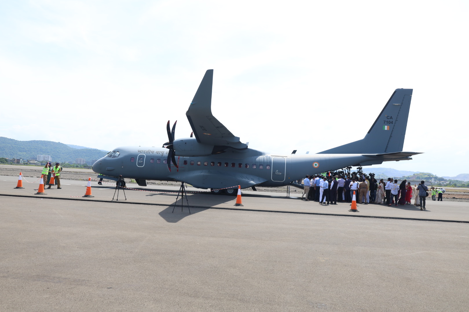 निर्माणाधीन नवी मुंबई आंतरराष्ट्रीय विमानतळाच्या धावपट्टीची चाचणी आज यशस्वीरित्या पार पडली आहे. या वेळी राज्याचे मुख्यमंत्री एकनाथ शिंदे आणि उपमुख्यमंत्री देवेंद्र फडवणीस या वेळी उपस्थित होते. वायू दलाच्या सी – 295 या विमानाचे विमानतळावर यशस्वीरित्या लँडिंग झाल्यानंतर विमानाला वॉटर सॅल्यूट देण्यात आल्याचे पहायला मिळाले.