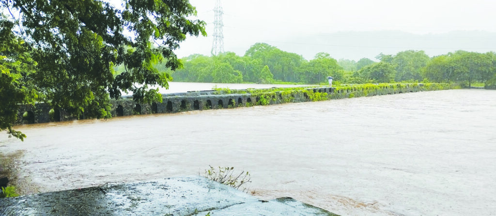 यावर्षीच्या पावसाळ्यात अंबा नदीला दोन वेळा पूर आला होता. या दोन्ही पुराच्या वेळी जनजीवन व येथील एस.टी. वाहतूक व्यवस्था विस्कळीत झाली होती. त्यातच नागोठणे शहर व परिसरात गेले दोन-तीन दिवस मुसळधार पाऊस पडत आहे. त्यामुळे अंबा नदी पुन्हा एकदा तुडुंब भरून वाहण्यास सुरुवात झाली आहे. सोमवारी (दि.18) दुपारपर्यंत अंबा नदीने धोक्याची पातळी गाठली नव्हती. मात्र, असे असले तरी सोमवारी दुपारी नागोठणे एस.टी. स्थानकाच्या मागील बाजूस अंबा नदीचे पाणी आले होते. तर अजूनही पावसाचा जोरही कायम असल्याने नागोठण्यात कधीही पुन्हा पूर येण्याची शक्यता आहे. त्यामुळे यंत्रणेने नागरिकांना व दुकानदारांना सतर्कतेचा इशारा दिला आहे.
