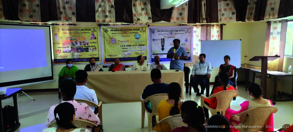 तालुक्यातील मतिमंद विशेष मुलांना समाजाच्या मुख्य प्रवाहात आणण्याच्या दृष्टीने त्यांना सातत्य पूर्ण मार्गदर्शन प्रेरणेची, प्रेमाची व सन्मान पूर्ण वागणूतिची आवश्यकता असते. त्या दृष्टिकोनातून सी.एस.आर. जे.एन.पि.टी मुंबई व जन शिक्षण संस्थान रायगड यांनी विशेष पुढाकार घेऊन व्होकल फॉर लोकल आत्मनिर्भर भारत उपक्रमांतर्गत विद्यार्थी व पालकांसाठी खाद्यपदार्थ प्रक्रिया व्यवसाय प्रशिक्षण पूर्ण केले आहे.