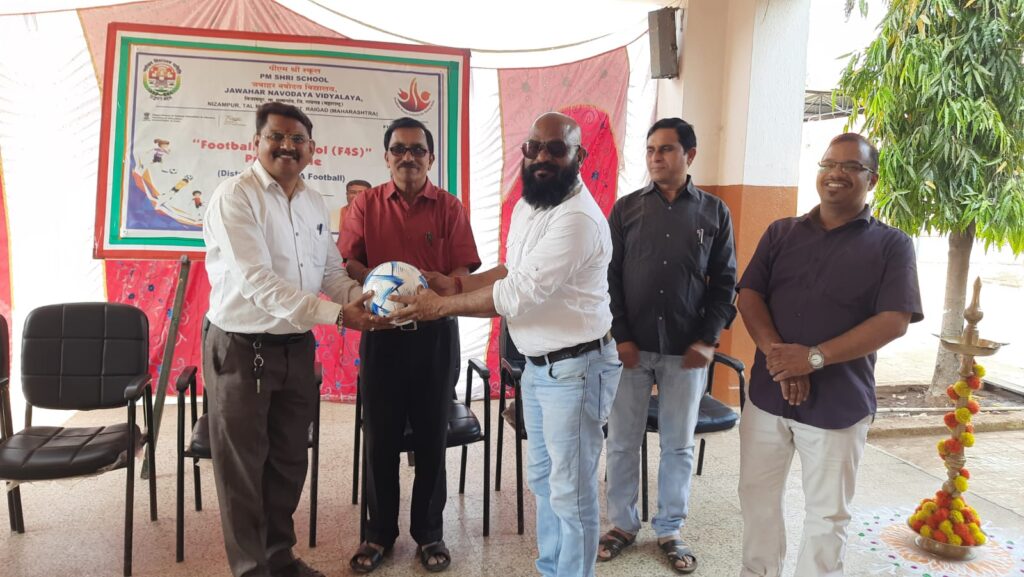 पीएम श्री स्कूल जवाहर नवोदय विद्यालय, निजामपूर, येथे मंगळवारी (दि.30) फुटबॉल फॉर स्कूल या अनोख्या स्पर्धेचे आयोजन करण्यात आले होते. शाळांसाठी फुटबॉल हा फिफाद्वारे युनेस्कोच्या सहकार्याने चालवला जाणारा एक महत्त्वाकांक्षी कार्यक्रम आहे. ज्याचे उद्दिष्ट सुमारे 700 दशलक्ष मुलांच्या शिक्षण, विकास आणि सक्षमीकरणामध्ये योगदान देण्याचे आहे. रायगड जिल्ह्यातील विविध शाळांमध्ये फुटबॉल वाटप करण्याची जबाबदारी जवाहर नवोदय विद्यालयाकडे केंद्र सरकारद्वारे सोपवण्यात आली होती. त्याचाच एक भाग म्हणून सदरील कार्यक्रम आयोजित करण्यात आला होता.
