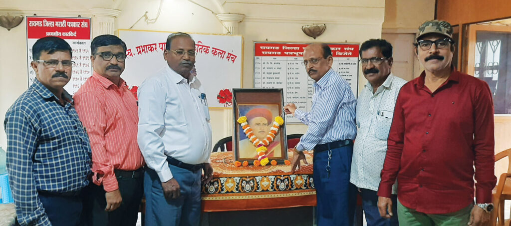 रायगड जिल्हा मराठी पत्रकार संघ आणि स्व. प्रभाकर पाटील सांस्कृतिक कला मंच तसेच प्रभाकर पाटील सार्वजनिक वाचनालय अलिबाग यांच्या संयुक्त विद्यमाने रामनारायण पत्रकार भवनात पत्रकार दिनानिमित्त दर्पणकार आचार्य बाळशास्त्री जांभेकर यांच्या प्रतिमेला मंचाचे उपाध्यक्ष तसेच साप्ताहिक कोकणनामाचे सहसंपादक शरद कोरडे यांच्या हस्ते पुष्पहार अर्पण करून अभिवादन करण्यात आले.