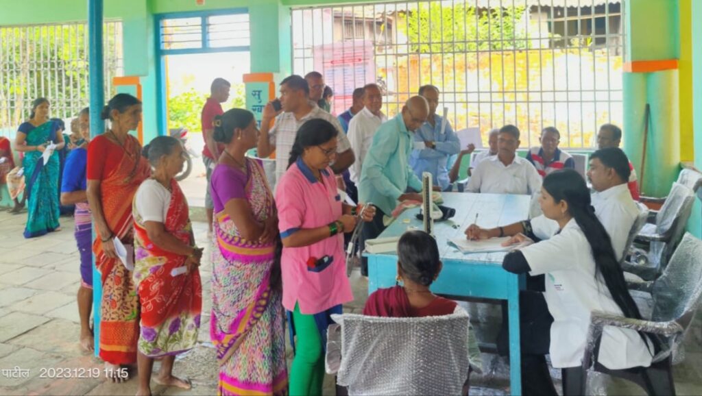 या शिबिराचे उद्घाटन दिपक पाटील, अध्यक्ष अनंत भुरे, विश्वास म्हात्रे, विजय पाटील, एकनाथ घासे या मान्यवरांच्या हस्ते करण्यात आले. यावेळी वैद्य आर्चिस पाटील, डॉ. अक्षय ठाकूर, डॉ. रेश्मा मढवी, वर्णिता वाकडे, नुतन ठाकूर, शोभा पाटील, हर्षदा म्हात्रे, शेठ. ओ.एस.परमार अभियांत्रिकी पदविका कॉलेजचे प्राध्यापक वैभव नांदगावकर आदींसह नागरिक बहुसंख्येने उपस्थित होते. या शिबिरात प्रामुख्याने मणक्यांचे आजार, हृदयरोग, सांधेदुखी, संधीवात, मधुमेह, उच्च रक्तदाब, मेंदूचे विकार, मूळव्याध, श्वसनाचे विकार अशा अनेक-विविध रोगांवरील 105 रुग्णांवर मोफत उपचार करुन त्यांना आयुर्वेदातील अत्यंत महागडी असणारी औषधे मोफत देण्यात आली.