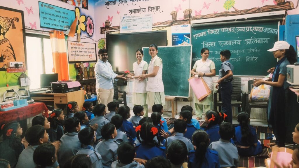 रायगड जिल्हा शासकीय रुग्णालय, अलिबागच्या परिचर्या प्रशिक्षण केंद्र अलिबाग येथील एएनएम आणि जीएनएमच्या विद्यार्थिनींचे ग्रामीण आरोग्य अनुभव शिबीर रसायनी पाताळगंगा येथील लोहोप आरोग्य उपकेंद्रात सुरू आहे. या कार्यक्रमांतर्गत गुरुवारी (दि.11) रा.जि.प. उच्च प्राथमिक शाळा, वडगाव येथे शालेय विद्यार्थ्यांची आरोग्य तपासणी, बीएमआयएस व आरोग्य विषयक मार्गदर्शन करण्यात आले. यात आरोग्य विषयक चांगल्या सवयी, घ्यावयाची काळजी तसेच किशोरवयीन मुलांना मार्गदर्शन, किशोरवयीन मुलींना स्वच्छता व शारीरिक बदल तसेच घ्यावयाची दक्षता व मासिक पाळी व्यवस्थापन विषयी मार्गदर्शन करण्यात आले. या कार्यक्रमाकरीता जिल्हा रुग्णालय रायगड, अलिबागच्या अधिसेविका गायत्री म्हात्रे व परिचर्या प्रशिक्षण केंद्र जिल्हा रुग्णालय रायगड, अलिबागच्या परिचर्या अधिकारी सारिका पाटील यांचे मोलाचे मार्गदर्शन मिळाले. कार्यक्रमाकरिता पाठ्यनिर्देशिका धनश्री पाटील, जिल्हा परिषद प्राथमिक शाळा मुख्याध्यापक सुभाष राठोड व इतर शिक्षक, विद्यार्थी, पालक उपस्थित होते व जी.एन. एम. तृतीय वर्ष विद्यार्थिनी परिचारिका मोठ्या संख्येने उपस्थित होत्या.