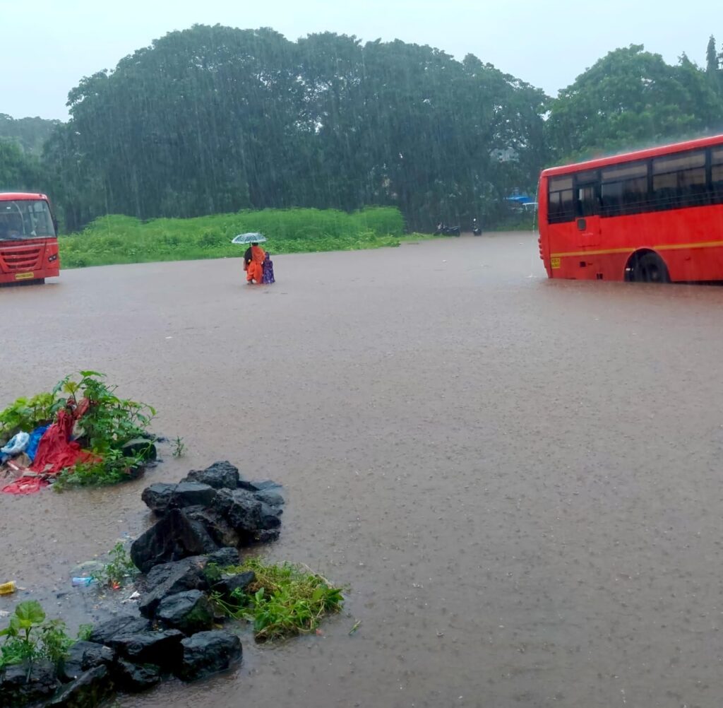 पावसात मंगळवारी सकाळी अलिबाग-तळा मार्गावरील पुलावरून पाणी वाहू लागल्याने वाहतूक बंद करण्यात आली. अतिवृष्टीमुळे सावित्री नदीचे पाणी महाड शहरामध्ये शिरले. रावढळ पुलावरून पाणी वाहत असल्याने या मार्गावरील वाहतूक बंद करण्यात आली. विन्हेरी येथील नागेश्वरी नदीमध्ये तुडूंब पाणी भरले. गावातील मल्लिकार्जून मंदिराजवळील पुलावरून वाहू लागले. महाडमधील रायगडकडे जाणाऱ्या दस्तुरी मार्गावर पाणी आल्याने हा मार्ग बंद करण्यात आला. अलिबाग शहरातील पीएनपी नगर, अलिबाग एसटी स्थानक परिसर पाण्याने भरला. त्यामुळे प्रवाशांसह चालकांचेदेखील प्रचंड हाल झाले.