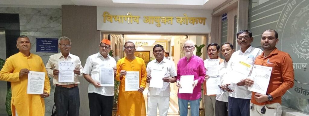 महाराष्ट्रातील देवस्थानांच्या हजारो एकर जमिनी भूमाफियांनी, महसूल अधिकाऱ्यांच्या संगनमताने बेकायदेशीरपणे हडपल्या आहेत. या गंभीर समस्येवर तोडगा काढण्यासाठी, गुजरात व कर्नाटकच्या धर्तीवर कठोर ‘अँटी लँड ग्रॅबिंग ॲक्ट’ लागू करावा, अशी जोरदार मागणी मुंबई, ठाणे, रायगड आणि पालघर जिल्ह्यांसह महाराष्ट्रातील 22 जिल्ह्यांतील 1,000 हून अधिक मंदिर विश्वस्तांनी एकाच वेळी केली. मंदिर महासंघाच्या नेतृत्वाखाली ही मागणी मुख्यमंत्री श्री. देवेंद्र फडणवीस व उपमुख्यमंत्री श्री. एकनाथ शिंदे यांना निवेदनाद्वारे करण्यात आली. महसूल राज्यमंत्री श्री. योगेश कदम यांच्यासह सुमारे 22 जिल्हाधिकारी, तहसिलदार, तसेच आमदार यांना 300 हून अधिक निवेदने सादर करण्यात आली आहेत. कोकण भवन, बेलापूर येथे विभागीय कोकण आयुक्त, वसई येथे तहसीलदार कार्यालय, ठाणे जिल्हाधिकारी कार्यालय तसेच श्रीवर्धन, पाली येथील तहसीलदार आणि दंडाधिकारी कार्यालय येथेही निवेदने देण्यात आली.