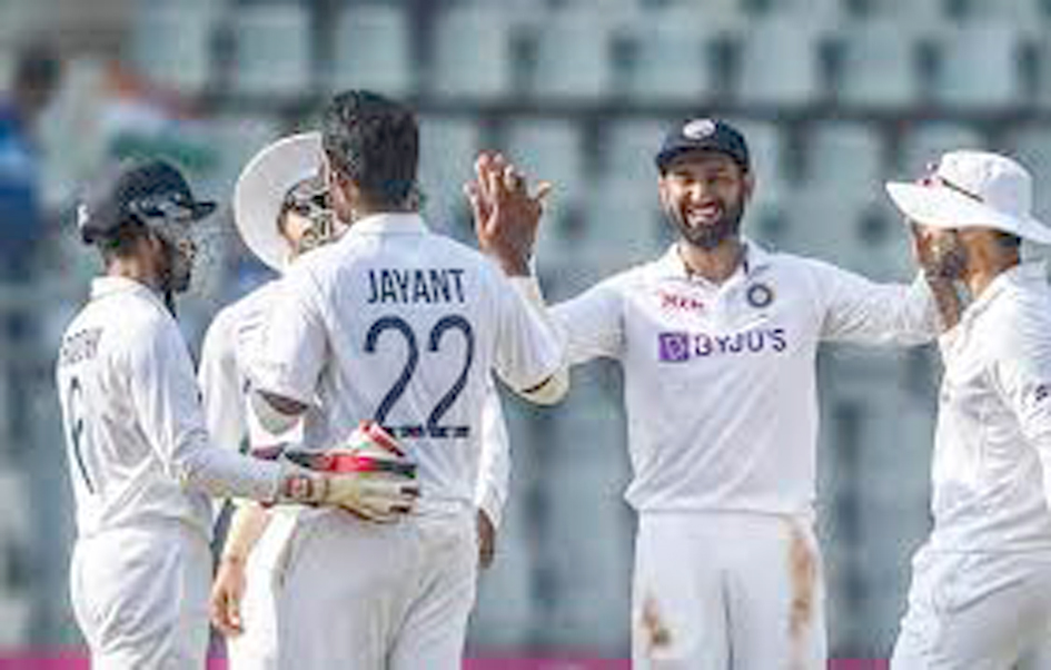 भारताचा फिरकीपटू रवीचंद्रन अश्विनने कप्तान टॉम लॅथमला (6) स्वस्तात बाद करत न्यूझीलंडला पहिला धक्का दिला. त्यानंतर अश्विनने विल यंग (20) आणि रॉस टेलर (6) यांनाही तंबूत मार्ग दाखवत न्यूझीलंडची अवस्था खिळखिळी केली. 3 बाद 55 अशी धावसंख्या असताना डॅरिल मिशेलने किल्ला लढवला. त्याला हेन्री निकोल्सची साथ लाभली. या दोघांनी संघाचे शतक पूर्ण केले. विराटने अक्षर पटेलला चेंडू सोपवला आणि अक्षरने मिशेलला जयंत यादवकरवी झेलबाद करत ही भागीदारी मोडली. मिशेलने 7 चौकार आणि 2 षटकारांसह 60 धावा केल्या. मिशेलनंतर आलेला यष्टीरक्षक टॉम ब्लंडेल खातेही न उघडता धावबाद झाला. 129 धावांत न्यूझीलंडने 5 फलंदाज गमावले. चौथ्या दिवशी जयंत यादवने रचिन रवींद्रला (18) पुजाराकरवी झेलबाद करत न्यूझीलंडला सहावा धक्का दिला. त्यानंतर पुढच्या पाच धावांत न्यूझीलंडने आपले चारही फलंदाज गमावले आणि त्यांचा दुसरा डाव 56.3 षटकात 167 धावांत संपुष्टात आला. फिरकीपटू जयंत यादव आणि अश्विनने प्रत्येकी 4 बळी घेतले.