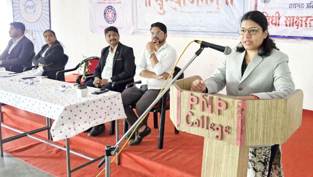 कार्यक्रमास संस्थेच्या कार्यवाह चित्रलेखा पाटील यांनी शुभेच्छा दिल्या. कार्यक्रमास ॲड.निलोफर शेख उपस्थित होत्या त्यांनी विद्यार्थ्यांना Anti-Ragging Laws, Traffic Rules या संदर्भात माहिती दिली. तर ॲड. तन्मय म्हात्रे यांनी World Tribal Day, NALSA/MALSA मध्ये उपलब्ध असणाऱ्या विविध स्कीम बदल सविस्तर माहिती दिली. तेजस्विनी निराळे वरिष्ठ दिवाणी न्यायाधीश तथा सचिव, जिल्हा विधी सेवस प्राधिकरण, रायगड अलिबाग यांनी विद्यार्थ्याांंचे हक्क तसेच जिल्हा विधी प्राधिकरण यांच्याकडून उपलब्ध असणाऱ्या विविध सुविधा तसेच समाजामध्ये युवा वर्गाचे योगदानावर प्रकाश टाकत विद्यार्थ्यांना मार्गदर्शन केले. याप्रसंगी विक्रांत वार्डे, प्राचार्य रविंद्र पाटील, उप्राचार्य निशिकांत कोळसे कार्यक्रमास उपस्थित होते. कार्यक्रमाचे सूत्र संचालन दिनेश पाटील यांनी केले तर आभार प्रदर्शन गणेश पाटील यांनी केले. कार्यक्रमाचे नियोजन तेजेश म्हात्रे यांनी केले.